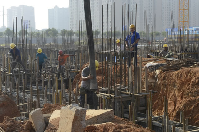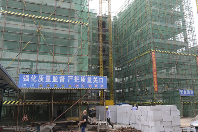 在松江花园项目现场,上百名施工人员在炎炎烈日下挥洒着汗水,奋战在工地。该项目主要服务于稻谷溪湿地公园双征安置,总投资约4500万元,目前1号至5号楼的主体工程建设已全面铺开,预计今年底完成主体结构,2018年2月主体封顶。