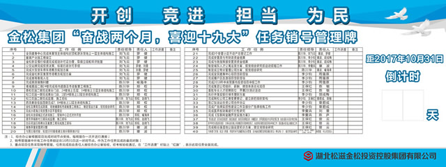 sunbet申愽官网“奋战两个月,喜迎十九大”活动确定的40项重点工作任务,涉及到产业发展、土地收储、项目建设、资产营运、融资申报和资金理财等6个方面。