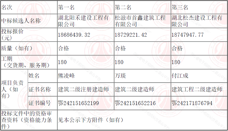 松滋市应急装备产业园(一期)场平工程于2021年02月04日在湖北省电子招投标交易平台发布招标公告,2021年03月01日在松滋市开标室(1)开标,并于2021年03月01日完成评标工作。根据评标委员会提交的评标报告,松滋金松工业投资开发有限公司已经确认评标结果,现进行评标结果公示。