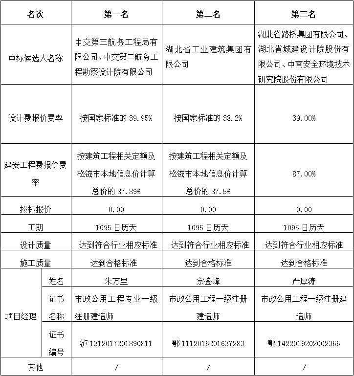 本项目于2023年05月29日在湖北省电子招投标交易平台发布招标公告,2023年06月29日在松滋市开标室(1)开标,并于2023年06月29日完成评标工作。根据评标委员会提交的报告,松滋金松工业投资开发有限公司已经确认评标结果,现进行评标结果公示。