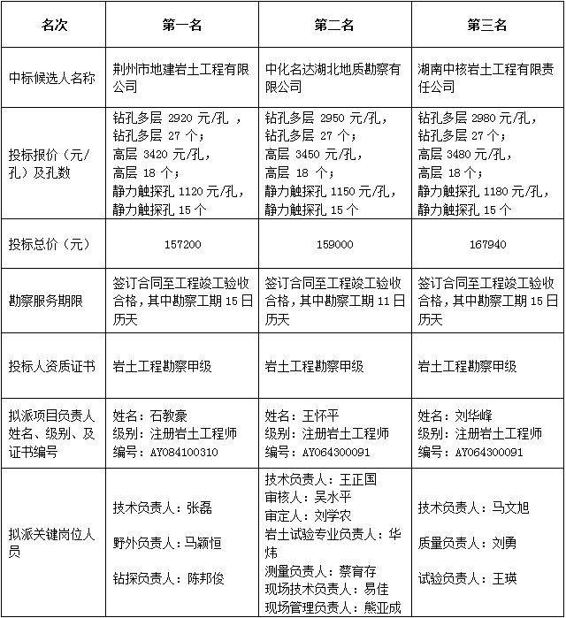 松滋市人才公寓建设项目勘察于2018年12月29日在松滋金投商业开发有限公司发布投标邀请书,2019年1月5日在松滋市sunbet申愽官网开评标室开标。根据评标委员会提交的报告,松滋金投商业开发有限公司已经确认开标结果,现进行中标候选人公示。