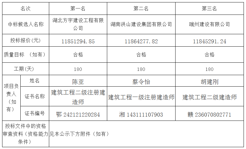 松滋市环城路集贸市场建设项目于2019年9月7日在湖北省电子招投标交易平台发布招标公告,2019年09月30日在开标室(1)开标,并于2019年09月30日完成评标工作。根据评标委员会提交的评标报告,松滋金投商业开发有限公司已经确认评标结果,现进行评标结果公示。