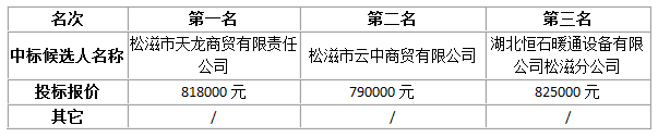 人才公寓(一期)空调挂机采购与安装项目于2020年4月13日发布竞争性磋商公告,2020年4月20日在sunbet申愽官网开标室开标。根据评标小组提交的评标结论,松滋金投商业有限公司已经确认开标结果,现进行中标候选人公示。