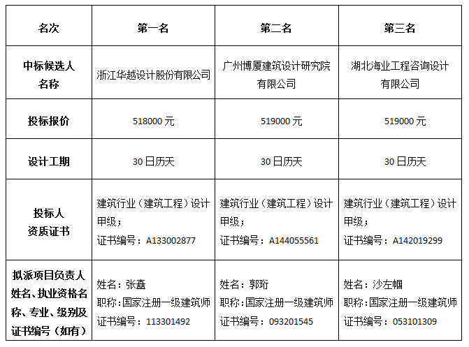 泰和花园(三期)安置小区建设项目建筑设计于2020年07月09日发出投标邀请,2020年07月16日在sunbet申愽官网开评标室开标,并于2020年07月16日完成评标工作。根据评标委员会提交的评标报告,湖北松滋金投置业有限公司已经确认评标结果,现进行评标结果公示。