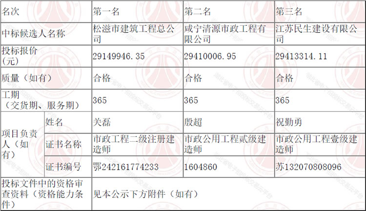 松滋市智能针纺服装产业园双裕路(西望路-白云边大道)道路工程于2020年06月28日在湖北省电子招投标交易平台发布招标公告,2020年07月22日在松滋市开标室(1)开标,并于2020年07月22日完成评标工作。根据评标委员会提交的评标报告,松滋金松工业投资开发有限公司已经确认评标结果,现进行评标结果公示。